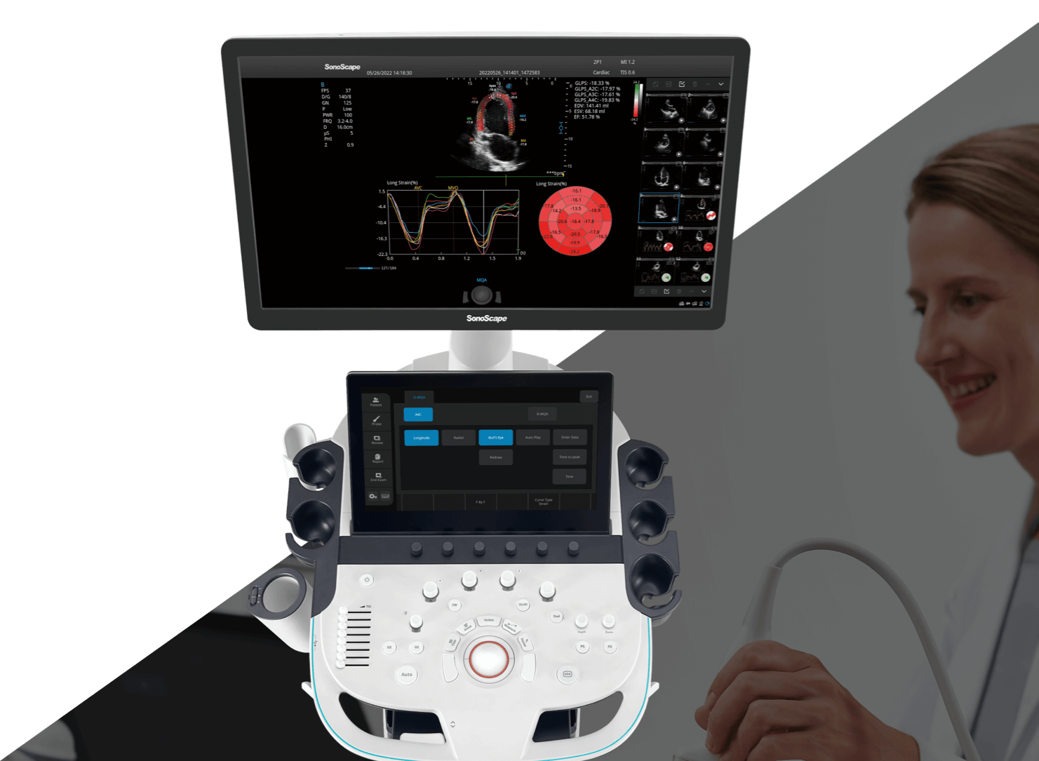 - Tissue Doppler Imaging: Fornisce ai medici clinici la possibilità di analizzare e confrontare i movimenti delle diverse parti del cuore del paziente.